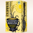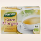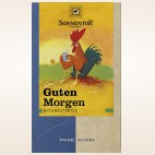 Bringt Schwung in den Tag: Unser Guten-Morgen-Tee aus biologischem Anbau versorgt Sie mit dem richtigen Kick für den Tag, um das Büro nicht im Halbschlaf zu erreichen. Dieser stimmungsvolle Kräutertee schmeckt kräftig-würzig mit kühlen Pfefferminznuancen.