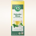 Auf der Basis von mildem Apfel treffen herb-süße Holunderbeeren und duftende Holunderblüten auf die vertraute Frische der Pfefferminze. Ob als fruchtige Erfrischung an heißen Sommertagen oder als wärmende Tasse an winterkalten Händen - unsere biologische Holunder-Minze bietet stets ein herrliches Kräuter-Bouquet erfischend-süßer Geschmacksnoten.