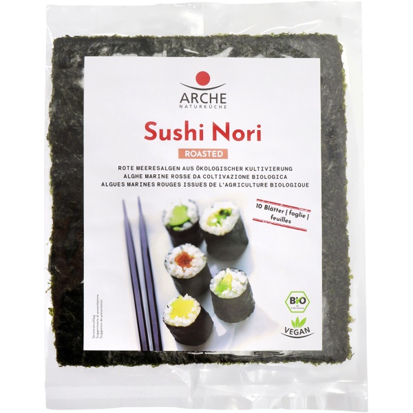 Die Bio-Nori-Blätter von Arche sind ideal zur Zubereitung von Sushi geeignet und begeistern Sushi-Fans mit ihrer sehr feinen Struktur und ihrem köstlichen Geschmack. Durch sorgsames Rösten werden die zarten Geschmacksnuancen wunderbar betont.