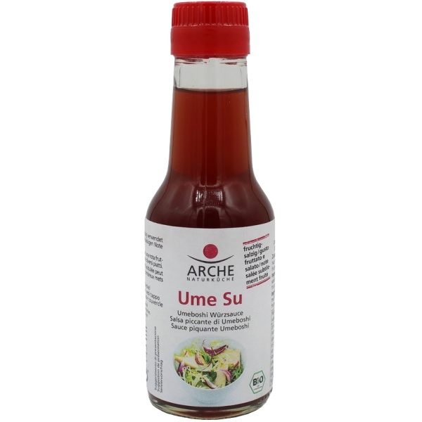 Umeboshi-Aprikosen werden für diese kleine Delikatesse in Meersalz eingelegt und an der Sonne getrocknet. Mit Shisoblättern reifen sie in Zedernholzfässern heran, wobei sich feinster Ume Su bildet. Unser Bio-Ume-Su belebt Salatsaucen, Dips und Aufstriche.