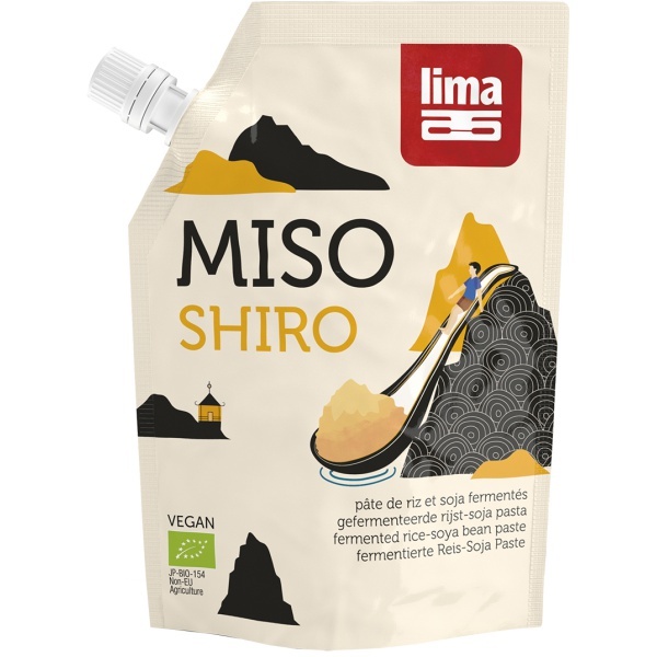 Das süße Shiro Miso von Lima wird aus geschältem Bio-Reis und Bio-Sojabohnen nach traditionellen handwerklichen Methoden hergestellt. Dieses cremige Würzmittel verfeinert Suppen, Dressings, Saucen und feines Gemüse.