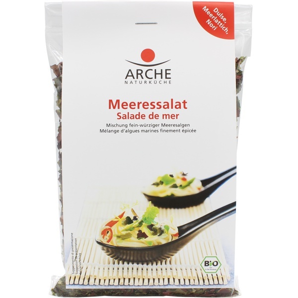 Der feine Meeressalat aus dem Hause Arche besteht aus zarten Meeresalgen mit feinwürzigem Aroma. Die Komposition aus Dulse, Nori und Meereslattich ist eine köstliche Beigabe zu Salaten, Suppen, Omelettes, Eintöpfen und Pfannkuchen.