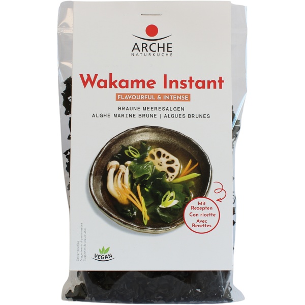 Unsere Instant-Wakame haben ein angenehm mildes Aroma und sind so fein, dass man sie direkt in eine Flüssigkeit einrühren kann. Nach ein bis zwei Minuten entfalten die braunen Meeresalgen ihre würzig-aromatische Note und sind besonders geeignet für Miso-Suppen, Salate, Gemüse und Eintöpfe.