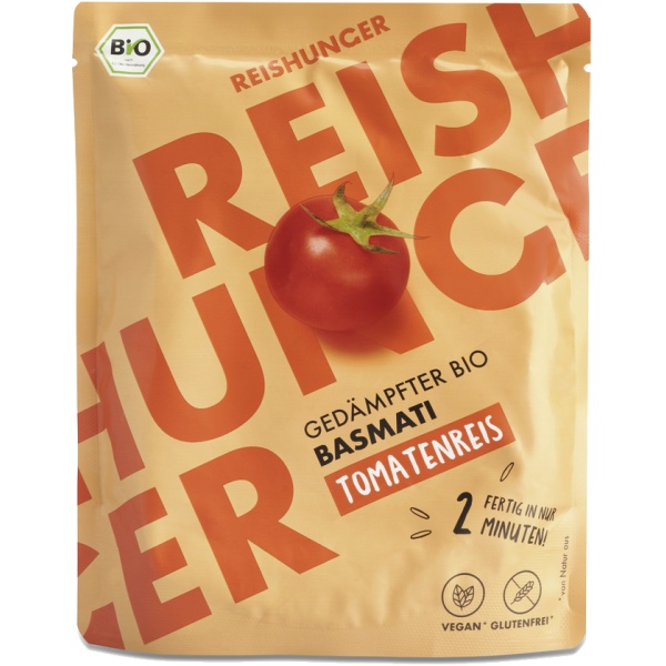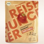 Fix, aromatisch und in nur 2 Minuten servierbereit: Unser Bio-Basmati-Tomatenreis von Reishunger kombiniert schonend gedämpften Basmati mit fruchtigen Tomatenstückchen, Basilikum und Oregano. Einfach kurz in Mikrowelle oder Pfanne erhitzen – schon überzeugt er mit mediterranem Geschmack. Vegan, glutenfrei und ohne Zusatzstoffe, perfekt solo, als Beilage oder in deiner Lieblings-Bowl!