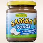 Traumhaft exotisch: Genießen Sie diese feine Komposition aus erlesenen Haselnüssen, edlem Kakao und tropischen Kokosnüssen aus biologischem Anbau als wohlschmeckenden Brotaufstrich oder veredeln Sie köstliche Süßspeisen und Gebäck mit unserem Rapunzel Samba Kokos.