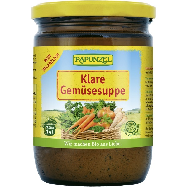Ein bunter Gemüsestrauß aus Zwiebeln, Karotten und Sellerie lässt diese äußerst ergiebige Bio-Gemüsebrühe entstehen. Feine Gewürze wie Kurkuma und Macis sowie ein Hauch Petersilie runden diese Komposition aus dem Hause Rapunzel harmonisch ab.