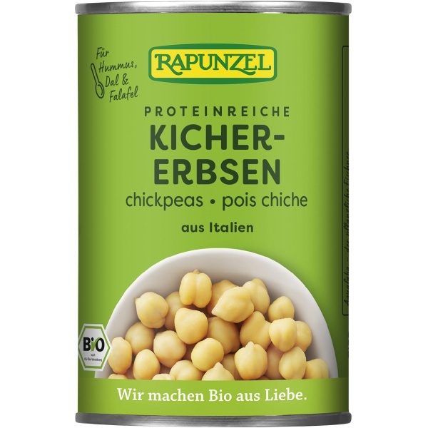Mit ihrem nussigen Aroma eignet sich diese eiweißreiche Zutat für leckere Salate, Antipasti, Suppen und Falafel. Unsere Bio-Kichererbsen von Rapunzel sind bereits vorgegart und in Wasser mit etwas Salz eingelegt.