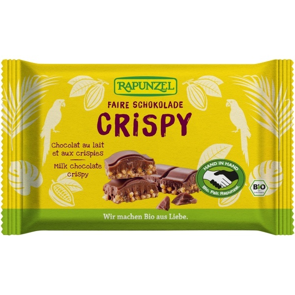 Reis, Hafer, Gerste und Roggen aus biologischem Anbau werden für diese kleine Schokoladensensation zu luftig-lockeren Getreide-Crispies verarbeitet. Zusammen mit zartschmelzender Vollmilchschokolade ergibt sich eine köstliche Kombination für alle Knusperfans.