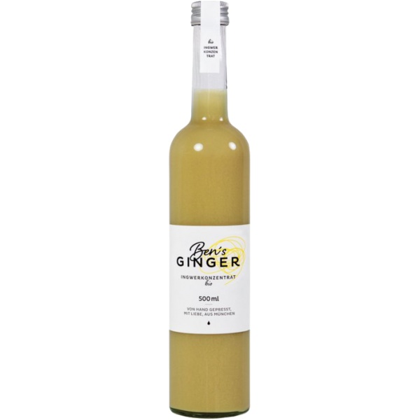 Ben's Ginger ist ein Bio-Ingwerkonzentrat, das im Herzen Münchens aus peruanischem Ingwer in traditioneller Handarbeit zubereitet wird. Es besitzt einen sehr hohen Ingweranteil und wird nicht gekocht, um so die Nährstoffe bestmöglich zu erhalten. Durch das schonende Produktionsverfahren und die wertvollen Inhaltsstoffe eignet sich Ben's Ginger wunderbar für eine leckere Ingwer-Schorle, Ingwer-Tee, Cocktails und vieles mehr ...