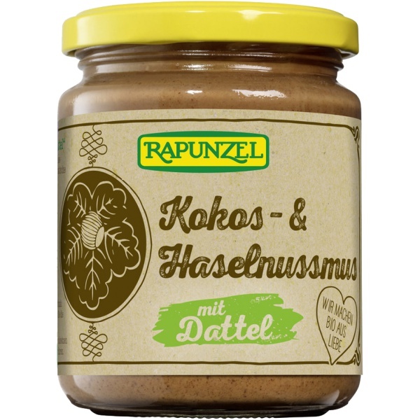 Exotische Kokosnuss und frisch geröstete Haselnüsse kombiniert mit herrlich reifen Datteln: Diese traumhaft aromatische Verführung verzaubert Frühstücksbrot, Smoothies, Müsli und Frühstücksbrei. Auch Desserts, Süßspeisen und Gebäck verfeinert dieses unwiderstehlich köstliche Bio-Nussmus ganz vortrefflich.