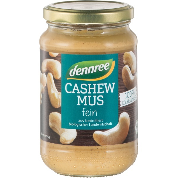 Unser köstliches Cashewmus von dennree aus 100 Prozent fettfrei gerösteten Bio-Cashewkernen schmeckt angenehm süß und bringt gesunde Energie und viele wertvolle Mineralstoffe mit. Es besitzt eine perfekte Konsistenz: nicht zu hart und nicht zu weich. So lässt es sich wunderbar als Aufstrich verwenden, kann aber auch in eine feine Sauce gemischt oder ganz einfach aus dem Glas genascht werden.