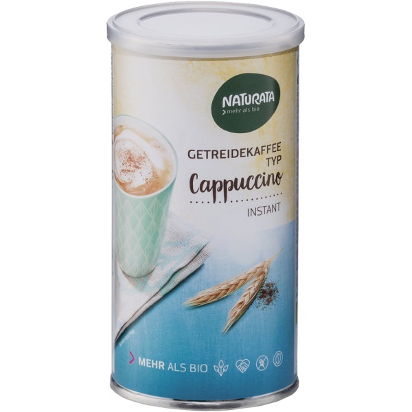 Der biologische Getreide-Cappuccino bietet einen besonders milden Kaffeegenuss für die ganze Familie - ohne Koffein und nur mit Maissirup gesüßt. Das Getreide wird nach biodynamischen Richtlinien in Deutschland angebaut. Zichorien, Eicheln und Feigen sind aus Europa und der Türkei. Die Herstellung erfolgt in einem handwerklich arbeitenden Familienbetrieb in der Schweiz.