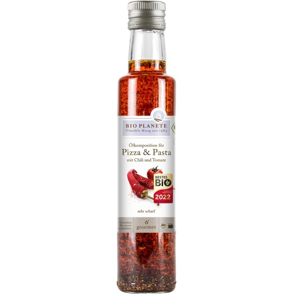 Unsere sorgsam komponierte Ölvariation mit Chili und Tomate verleiht Ihren Gerichten eine scharfe und herrlich aromatische Note nach Knoblauch, Olivenöl und Kräutern. Dieses kostbare Bio-Öl eignet sich wunderbar zum Backen sowie als scharfes Topping für jegliche mediterrane Gerichte.