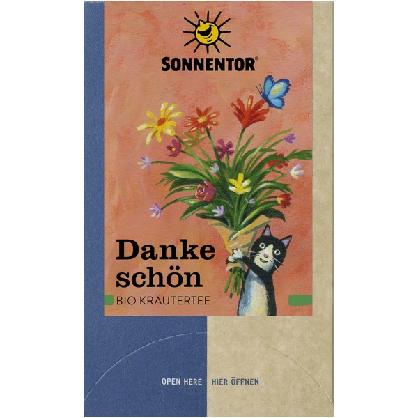 Ein wahrlich warmes Dankeschön: Dieser aromatische Bio-Kräutertee versetzt Sie geradewegs in eine duftend bunte Blumenwiese. Die frische Blumennote vereint mit einer würzigen Süße passt hervorragend zu Gerichten der französischen Küche und zu feinen Süßspeisen. Mit einer Tasse dieses wunderbaren Kräutertees wird jeder Genussmoment würdig eingeläutet. Zurücklehnen, entspannen, lächeln!