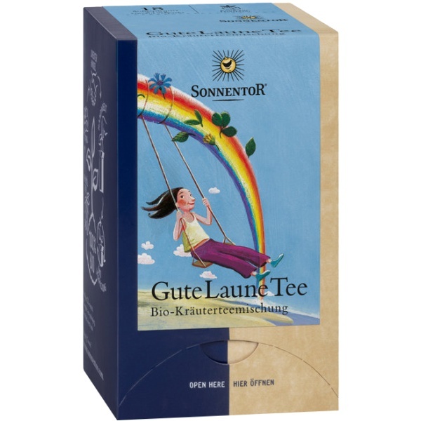 Bitte lächeln: Mit seinem strahlenden Gelb sorgt unser Gute-Laune-Tee im Nu für freundliche Gesichter. Brombeerblätter, Apfelminze und Erdbeerblätter ergeben eine wahnsinnig köstliche Mischung. Dieser herrliche Bio-Kräutertee wird direkt am Hof der Erzeugerfamilie in Handarbeit abgepackt.