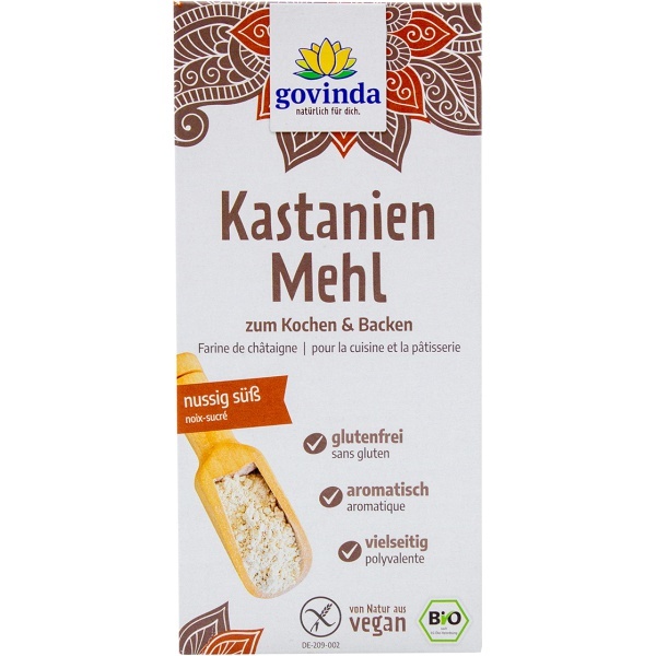 Die Esskastanie gilt als eine der wertvollsten Früchte, die so gut wie alle mineralischen Salze, viele Vitaminkomplexe sowie reinste Öle enthält. Mit diesem basischen Bio-Kastanienmehl lassen sich Saucen und Suppen sehr gut binden und Gemüsebratlinge verfeinern.