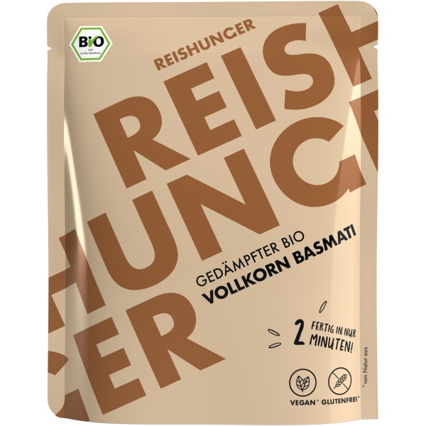 Der Reishunger Vollkorn-Basmati-Reis bringt aromatischen Reisgenuss in Rekordzeit auf den Teller. Der schonend gedämpfte Bio-Reis ist in nur 2 Minuten in Mikrowelle oder Pfanne servierfertig. Locker, körnig und mit fein-erdigem Aroma – perfekt zu Currys, Gemüsegerichten oder als schnelle Beilage.