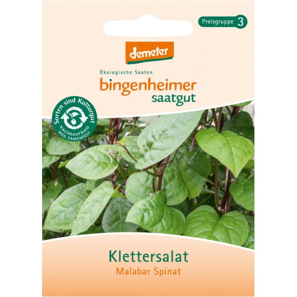 Diese rotstielige, sehr dekorative Kletterpflanze in Bio-Qualität begeistert mit ausgeprägt fleischigen Blättern und ist auch für den Anbau auf dem Balkon geeignet. Die Pflanzen werden bis zu 3 Meter hoch, daher ist eine Rankhilfe wie z. B. für Stangenbohnen erforderlich.
