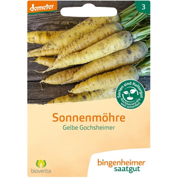 Die Gelbe Gochsheimer bildet ausgesprochen kräftige, spitz zulaufende Karotten mit gutem Ertragspotential und einer ausgezeichneten Lagerfähigkeit aus. Der Geschmack ist angenehm würzig und überaus aromatisch. Idealerweise bauen Sie dieses Bio-Saatgut auf lockeren Böden an, die nicht zur Verschlämmung neigen.