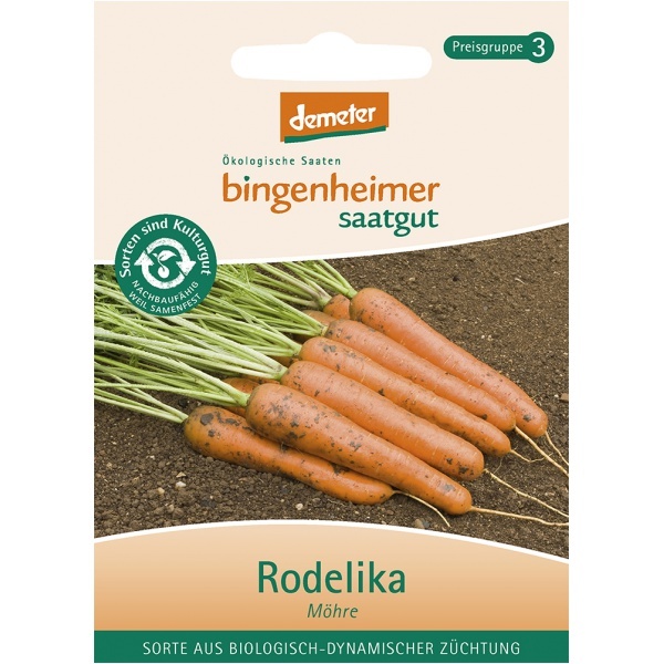 Rodelika ist eine stark wachsende, ertragreiche Karottensorte. Diese große, glattschalige Bio-Karotte weist eine intensiv orangerote Färbung auf und besticht mit ihrem kräftig-aromatischen Geschmack.