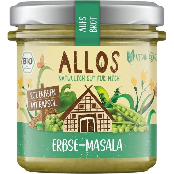 Extra cremig gerührt, streichzart und unwiderstehlich gemüsig: Das verspricht unsere Bio-Streichcreme "aufs Brot" von Allos und garantiert damit einen herzhaften, unvergleichlichen Brotgenuss. Leckere Erbsen, feiner Spinat und eine exotische Garam-Masala-Gewürzmischung machen diesen Aufstrich zu einer kleinen Kostbarkeit.