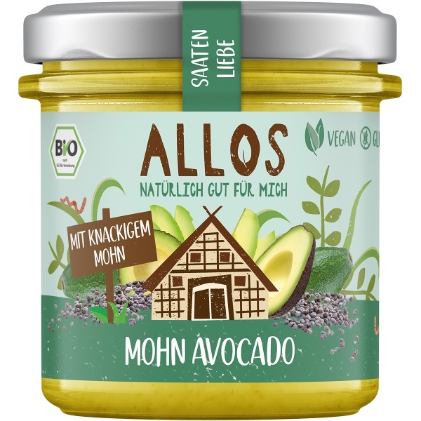 Geht eigentlich zu viel Avocado-Love im Leben?! Never ever! Als heiße Liebeserklärung an Ihre favorisierte grüne Frucht hat Allos diesen wundervollen Bio-Aufstrich mit vollreifen Avocados kreiert, der mit feiner Paprika abgerundet wird. Etwas Blaumohn und Kurkuma schenken dieser Kreation sehr geschmackvolle Nuancen. Ideal als Brotaufstrich, aber auch sehr gut zum Verfeinern von herzhaften Speisen geeignet!