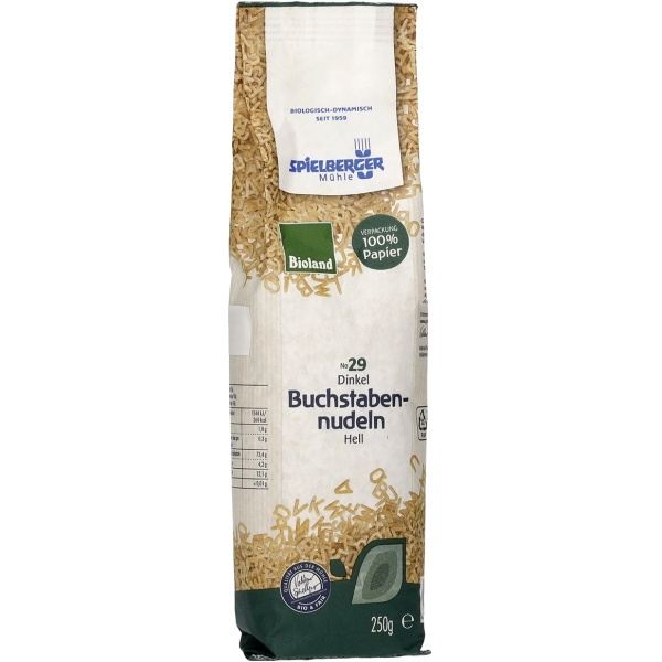 Diese hochwertigen Bio-Buchstabennudeln bieten maximalen Dinkelgenuss. Sie werden aus Demeter-Dinkel aus Deutschland hergestellt, sind intensiv im Geschmack und bieten beste Kochstabilität. Mit dieser tollen Pasta zaubern Sie für sich und Ihre Familie eine feine heiße Suppe.