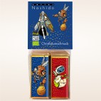 Ein bunter Schokoladen-Mix aus Tannenzapfen, Glocke und Weihnachtsmann: Diese wundervolle Kombination aus bester Bio-Schokolade gehört zum Sinnlichsten, was die stille Zeit kulinarisch zu bieten hat.