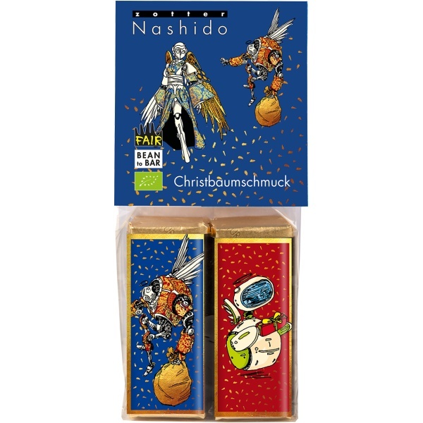 Schmücken Sie Ihren Christbaum mit diesen zehn köstlichen Christbaumanhängern im wunderschönen Weihnachtsdesign. Edle dunkle Bio-Schokolade aus dem Hause Zotter mit unterschiedlichen Kakaoanteilen ist ein kleines Fest vor dem Fest für alle Schokoholics. Die Anhänger sind bereits fix und fertig zum Dekorieren mit praktischen Goldbändern verpackt.