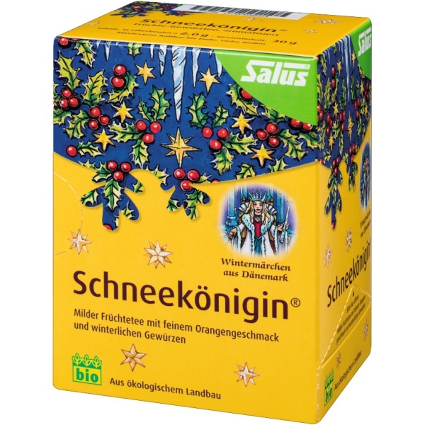 Im Märchen „Die Schneekönigin“ des dänischen Dichters Hans Christian Andersen sucht die kleine Gerda nach ihrem Freund Kay, der von einem zerbrochenen Zauberspiegel verletzt wurde. Als Folge davon kann Kay das Schöne und Gute in der Welt nicht mehr sehen und landet schließlich im eisigen Schloss der Schneekönigin. Gerda sucht inzwischen auf der ganzen Welt nach Kay, findet ihn im Eisschloss und erweicht sein bereits gefrorenes Herz mit ihren Tränen. Dadurch kann sich Kay von der Schneekönigin lösen und mit Gerda nach Hause zurück kehren. Dieser wunderbare Bio-Früchtetee mit feinem Orangengeschmack und köstlichen Gewürzen zaubert märchenhafte Düfte in Ihre Tasse.
