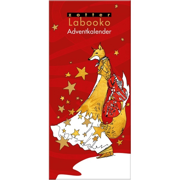 Dieser wunderschöne Adventskalender mit zwei aufklappbaren Flügeln wird gefüllt mit 24 unterschiedlichen Bio-Ursprungsschokoladen. Kleine Labooko-Minis entführen Sie in die Welt des Kakaos mit ansteigenden Kakaoprozenten von süßer Milchschokolade bis hin zu einer reinen Tafel mit 100 % Kakao. Erleben Sie Kakaoraritäten aus den unterschiedlichsten Ländern von legendärem Maya-Kakao aus Belize bis hin zu afrikanischem Inselkakao aus Madagaskar und lassen Sie sich von Karamell, Kokos, Kaffee, weißer Schoko und pinker Himbeer-Kokos-Tafel die Adventszeit versüßen.