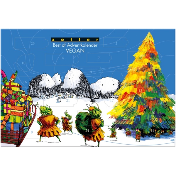 24 Tage vegane Schokovielfalt! Der „Best of Adventskalender“ von Zotter begeistert mit einer bunten Auswahl an Bio-Pralinen, Nougats, Krokants, dunklen Edelschokoladen und Trinkschokoladen – alles mit viel Liebe sowie Sinn für Qualität und Verantwortung gefertigt. Verpackt mit winterlichem Wichtelmotiv – für genussvolle Vorfreude!