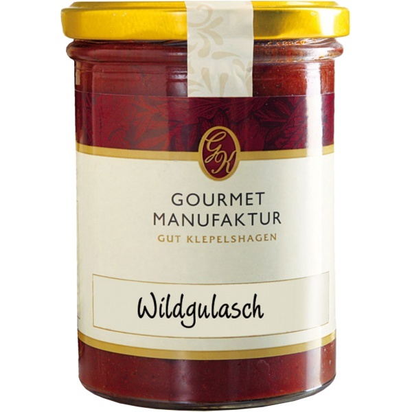 Ein ungarischer Klassiker - neu interpretiert von Gut Klepelshagen: Ganz langsam, mit viel Liebe, Sachverstand und Bedacht, köchelt dieses Gulasch aus Wildschwein und Rothirsch, die aus den gutseigenen Wäldern stammen, in alten Kupferkesseln. Abgelöscht wird es mit edlem Portwein und charaktervollem Rotwein. Würzige Wald- und Wiesenpilze schenken dieser butterweichen Spezialität schließlich eine perfekte Konsistenz und ein würzig-kräuteriges Aroma.