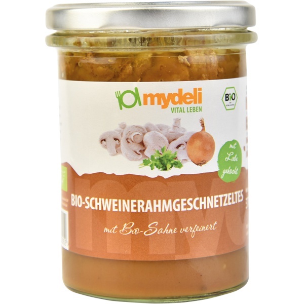 Mit Schweinefleisch aus ökologischer Haltung wurde dieses klassische Bio-Gericht besonders schonend zart gegart. Feinste Champignons, tagfrische Sahne, sonnenverwöhnte Tomaten und edle Gewürze machen es zu einem Gaumenschmaus. Als Beilage empfehlen wir Ihnen leckere Nudeln oder Bratkartoffeln.